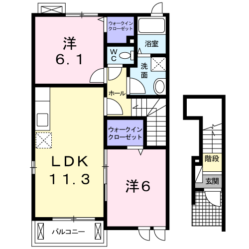 間取り 1F:1LDK 2F:2LDK